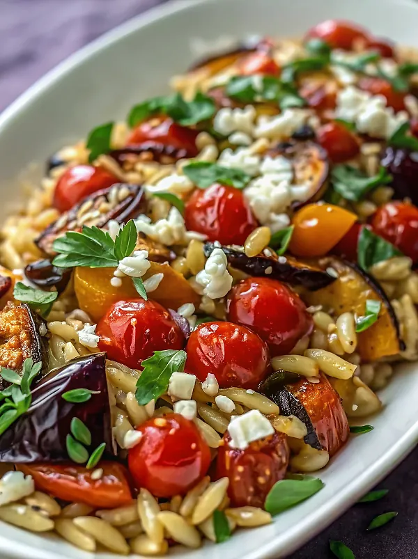 Enjoy a burst of flavors with this Roasted Tomato Basil and Feta Orzo. Quick, delicious, and perfect for any meal. Try today!