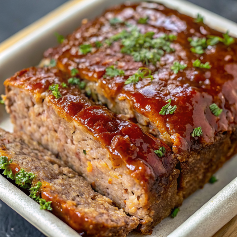 Discover Juicy Homemade Meatloaf—tender, cheesy, glazed perfection. Try today!