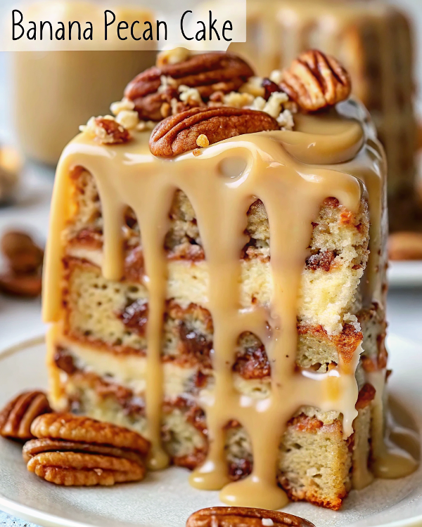 This stunning three-layer masterpiece combines the natural sweetness of ripe bananas with the buttery crunch of pecans and the luxurious depth of homemade caramel sauce. Each bite delivers a symphony of textures and flavors that will leave your guests speechless and your family begging for the recipe.