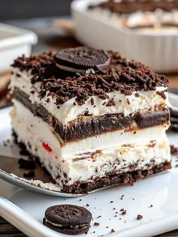 Indulge in layers of Oreo crust, creamy filling, and chocolate pudding in this heavenly no-bake dessert. Perfect for celebrations or sweet cravings. Try today!