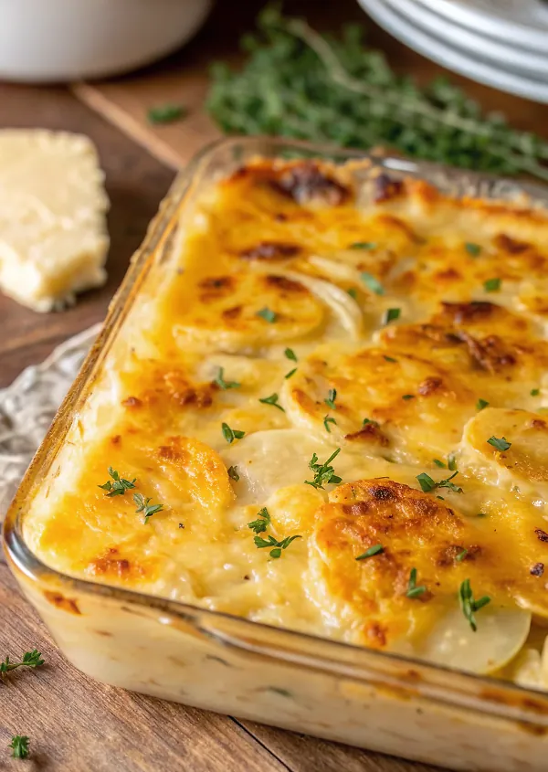 - Bake and finish: Cover with aluminum foil and bake for 1 hour. Remove foil, sprinkle remaining cheese on top, and bake uncovered until potatoes are tender, sauce has thickened, and surface is golden brown (15-20 minutes). Rest 30 minutes before serving.