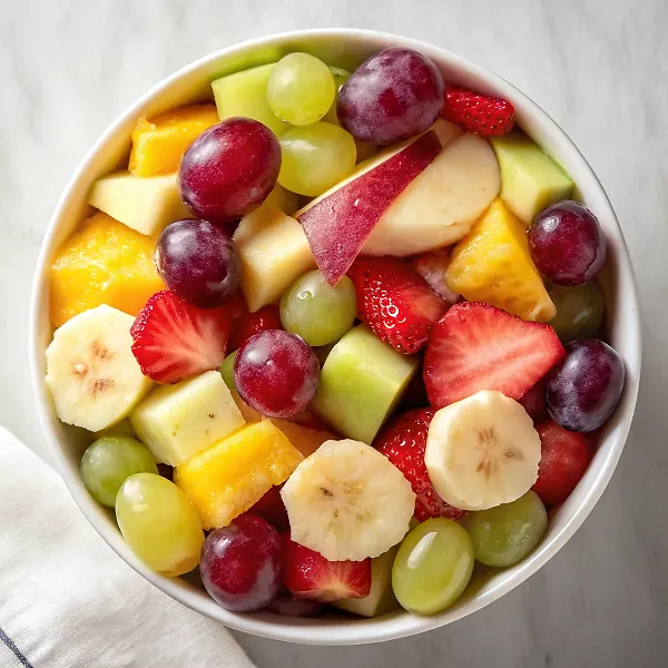 A vibrant and refreshing fruit salad featuring grapes, pineapple, berries and kiwi tossed with a zesty honey-lime dressing. Perfect for summer gatherings or as a healthy dessert option.